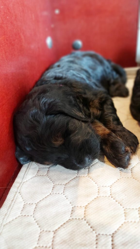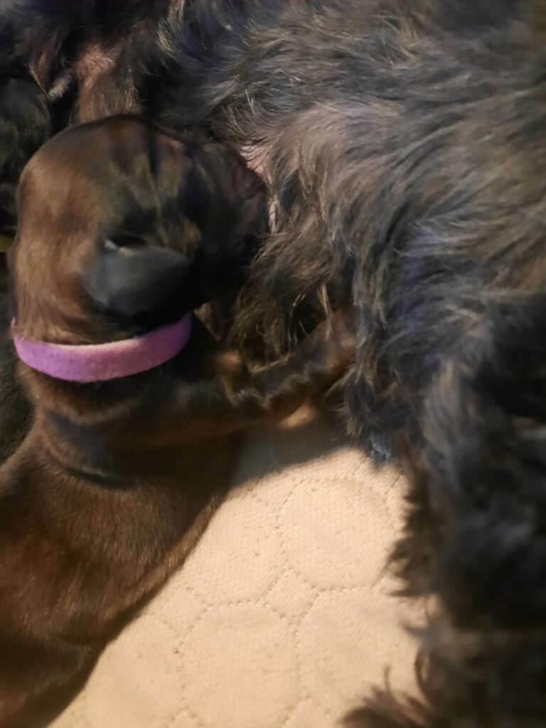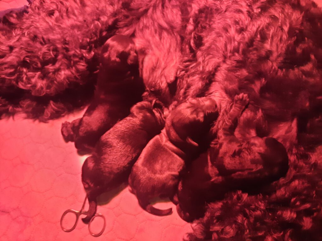 Geboren op 21 september 2025. Binnen een uur 5 puppies. Heerlijk onder de warmtelamp.
