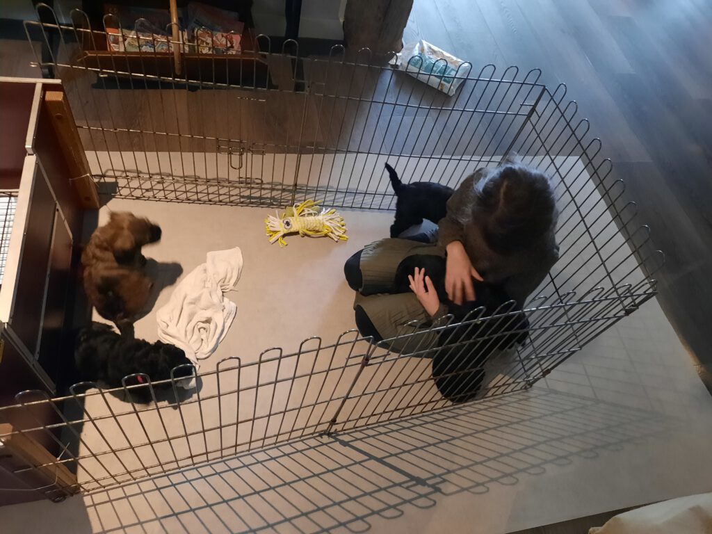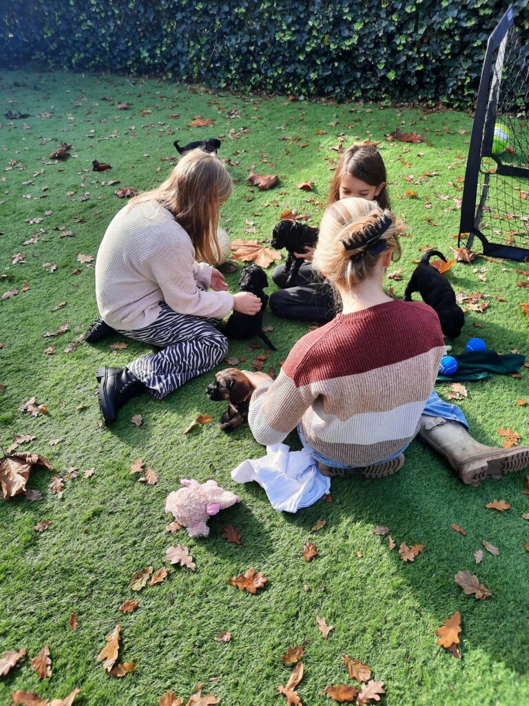 Socialiseren doen we samen, familie en vriendjes, genoeg armen, voor iedere pup 1.